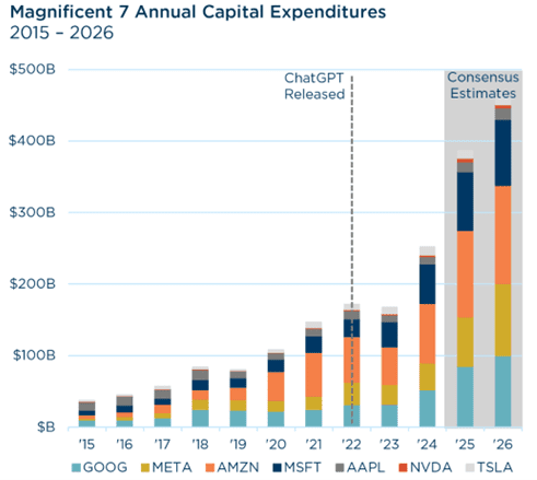 AI remained the dominant force across capital markets and the general economy. Tech companies are engaging in large-scale investments in AI infrastructure, benefiting many AI-related companies and contributing meaningfully to GDP growth. The consensus was that AI is a transformative technology with long-term benefits that justify the high costs. As a result, many companies continued to spend, and investors continued to push AI-related stocks to extremely high valuations.